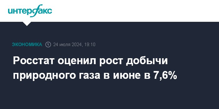 Суммарно добыча газа за 6 месяцев 2024 года, по данным Росстата, составила 345,8 млрд куб. м (годом раньше было 319,7 млрд куб. м), то есть рост составил 8,2%.