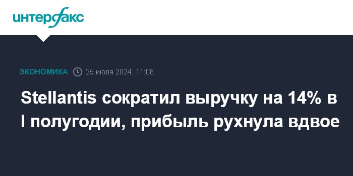 Москва. 25 июля. INTERFAX.RU - Автопроизводитель Stellantis NV, образованный в результате слияния Fiat Chrysler и PSA Group, сократил чистую прибыль в два раза в первом полугодии 2024 года и понизил выручку на 14%.