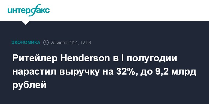 Москва. 25 июля. INTERFAX.RU - ООО "Тами и Ко", операционная компания группы ПАО "Хэндерсон Фэшн Групп" (ритейлер Henderson), по итогам I полугодия 2024 года увеличило выручку на 32%, до 9,2 млрд рублей, говорится в сообщении компании.