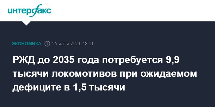 "Для того, чтобы в тех параметрах, которые мы видим, удержаться, с учётом убывающего парка, строительства Восточного полигона, примерных планов на перевозку, мы сможем оказаться в дефиците к 2035 году практически в 1,5 тысячи локомотивов", - сказал он.