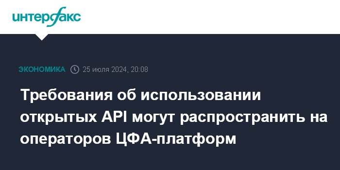 Москва. 25 июля. INTERFAX.RU - Требование об обязательном использовании открытых программных интерфейсов (API) в рамках информационного обмена на финансовом рынке могут распространить на операторов систем, в которых осуществляется выпуск цифровых финансовых активов, а также на операторов финансовых платформ. Это следует из проекта закона.