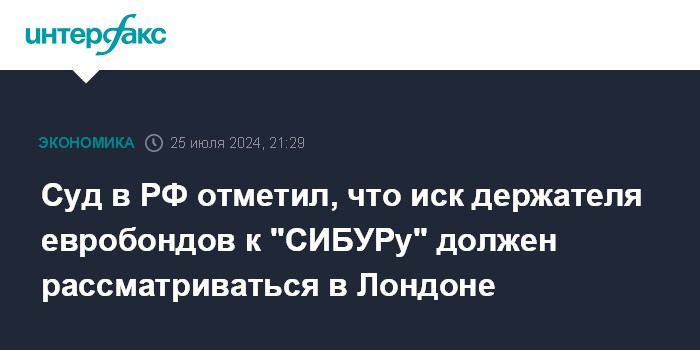 Суд в РФ отметил, что иск держателя евробондов к "СИБУРу" должен рассматриваться в Лондоне
