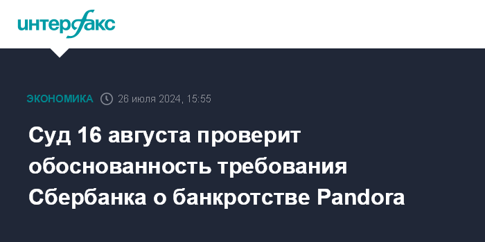 Суд 16 августа проверит обоснованность требования Сбербанка о банкротстве Pandora