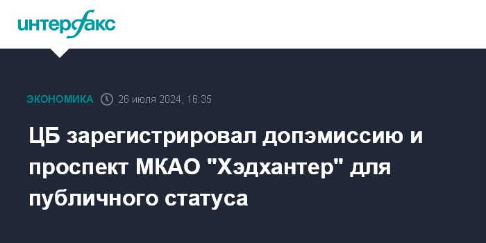ЦБ зарегистрировал допэмиссию и проспект МКАО "Хэдхантер" для публичного статуса