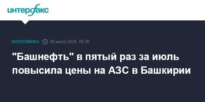 "Башнефть" в пятый раз за июль повысила цены на АЗС в Башкирии