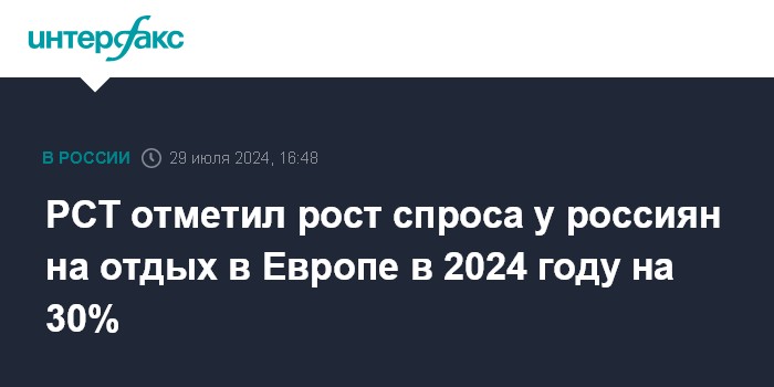 РСТ отметил рост спроса у россиян на отдых в Европе в 2024 году на 30%