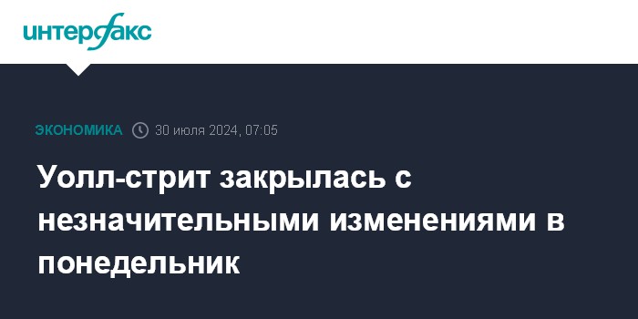 Уолл-стрит закрылась с незначительными изменениями в понедельник