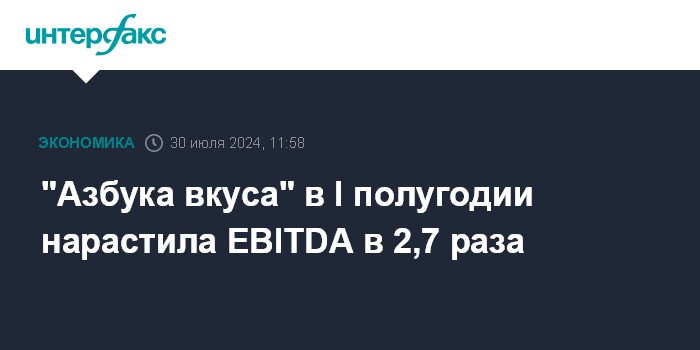 Москва. 30 июля. INTERFAX.RU - Ритейлер "Азбука вкуса" (ООО "Городской супермаркет") в I полугодии увеличил показатель EBITDA в 2,7 раза - до 2,35 млрд рублей, говорится в презентации к предстоящему размещению облигаций компании.