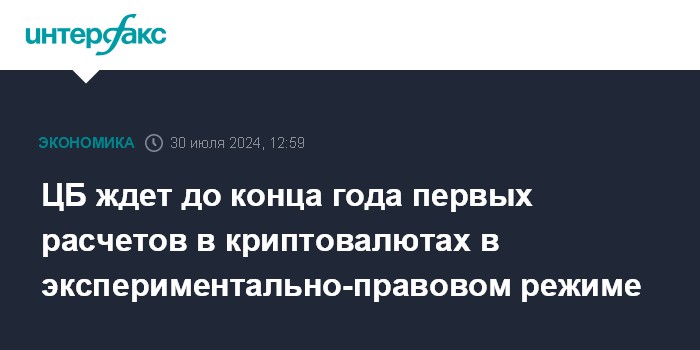 ЦБ ждет до конца года первых расчетов в криптовалютах в экспериментально-правовом режиме
