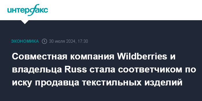 Совместная компания Wildberries и владельца Russ стала соответчиком по иску продавца текстильных изделий