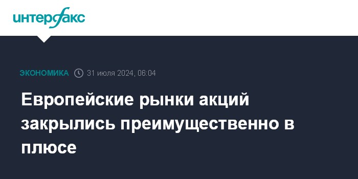 Москва. 31 июля. INTERFAX.RU - Фондовые индексы крупнейших стран Западной Европы в основном повысились по итогам торгов во вторник, трейдеры оценивали статданные и корпоративные отчеты в преддверии заседаний Федеральной резервной системы, Банка Англии и Банка Японии на этой неделе.