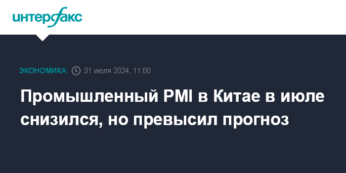 Промышленный PMI в Китае в июле снизился, но превысил прогноз