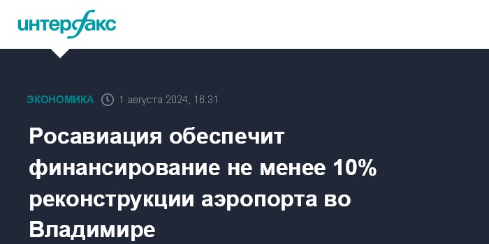 Росавиация обеспечит финансирование не менее 10% реконструкции аэропорта во Владимире