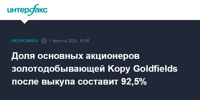Доля основных акционеров золотодобывающей Kopy Goldfields после выкупа составит 92,5%