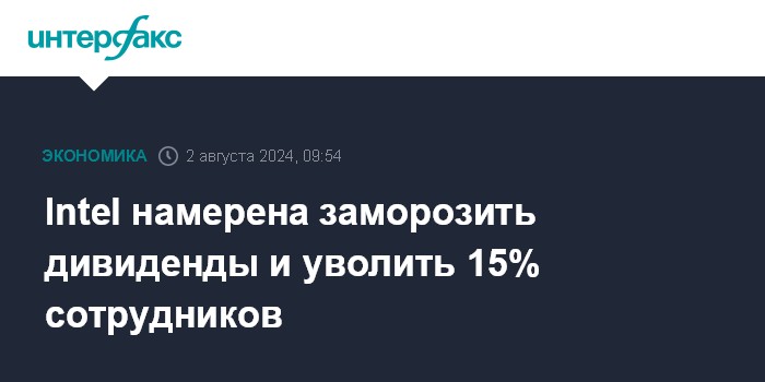 Москва. 2 августа. INTERFAX.RU - Американская Intel Corp., один из ведущих мировых производителей компьютерных компонентов, зафиксировала чистый убыток во втором квартале, умеренно сократила выручку и дала слабый прогноз, а также анонсировала приостановку дивидендных выплат и масштабное сокращение штата.