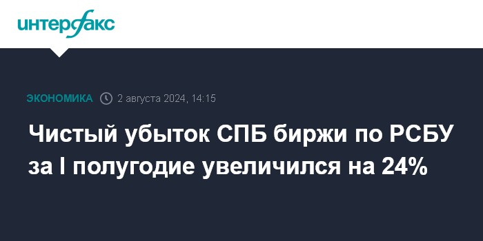 Чистый убыток СПБ биржи по РСБУ за I полугодие увеличился на 24%