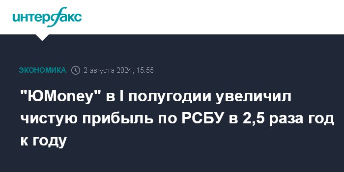 Москва. 2 августа. INTERFAX.RU - Принадлежащий Сбербанку платежный сервис "ЮMoney" в первом полугодии 2024 года увеличил чистую прибыль по РСБУ до 1,6 млрд рублей, что в 2,5 раза больше показателя за аналогичный период прошлого года, следует из отчетности "ЮMoney".