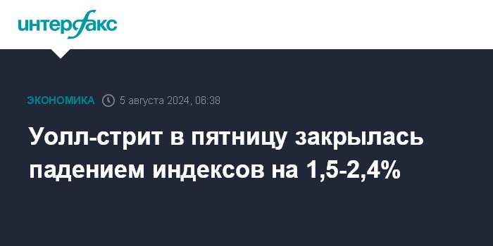 Уолл-стрит в пятницу закрылась падением индексов на 1,5-2,4%