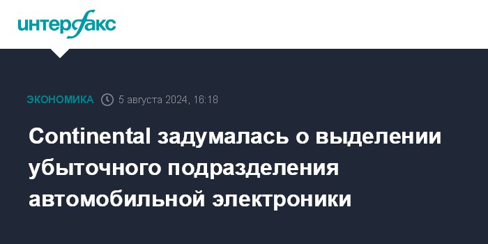 Москва. 5 августа. INTERFAX.RU - Германский производитель шин и других автокомпонентов Continental AG сообщил, что может выделить в отдельную компанию бизнес по производству автомобильной электроники.