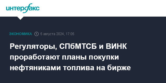 Регуляторы, СПбМТСБ и ВИНК проработают планы покупки нефтяниками топлива на бирже
