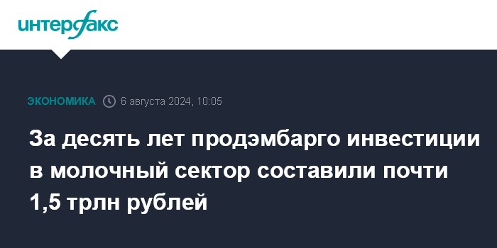 За десять лет продэмбарго инвестиции в молочный сектор составили почти 1,5 трлн рублей