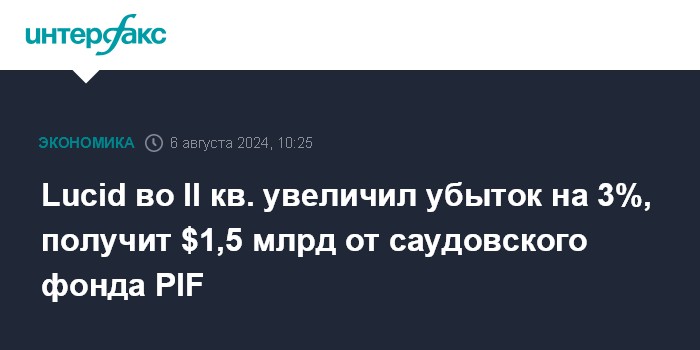 Lucid во II кв. увеличил убыток на 3%, получит $1,5 млрд от саудовского фонда PIF