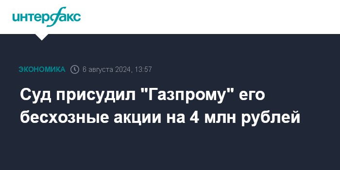 Суд присудил "Газпрому" его бесхозные акции на 4 млн рублей