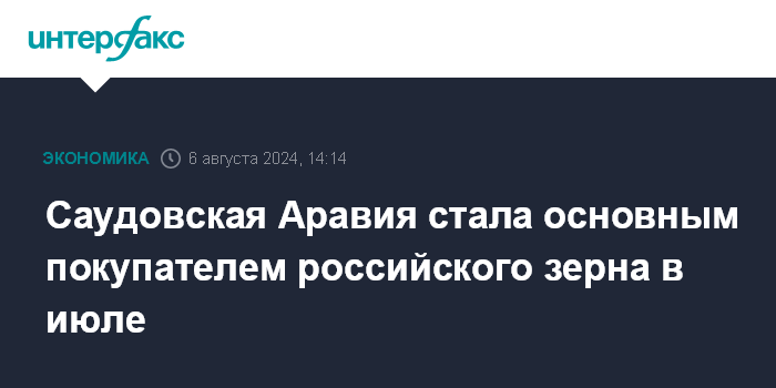 Саудовская Аравия стала основным покупателем российского зерна в июле