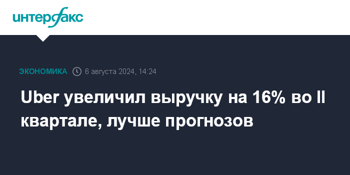Uber увеличил выручку на 16% во II квартале, лучше прогнозов