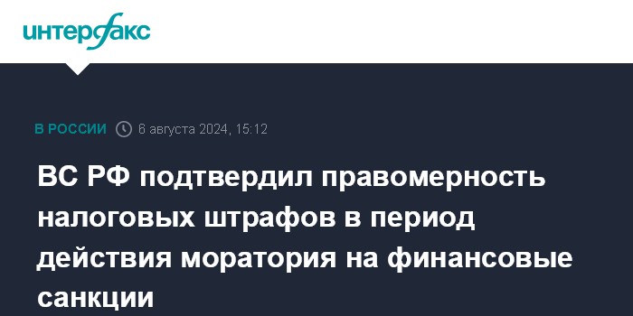 ВС РФ подтвердил правомерность налоговых штрафов в период действия моратория на финансовые санкции