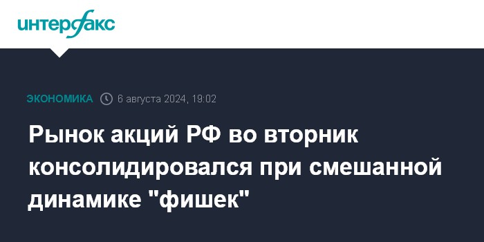Рынок акций РФ во вторник консолидировался при смешанной динамике "фишек"