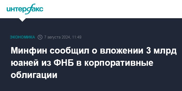 Минфин сообщил о вложении 3 млрд юаней из ФНБ в корпоративные облигации