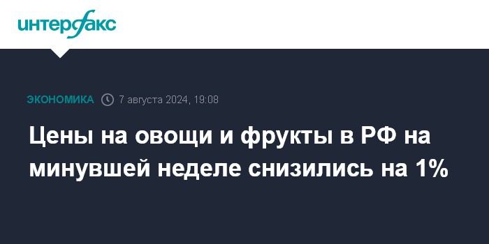 Цены на овощи и фрукты в РФ на минувшей неделе снизились на 1%