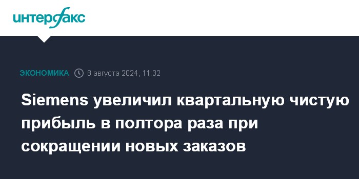 Москва. 8 августа. INTERFAX.RU - Крупнейший в Европе промышленный конгломерат Siemens AG резко увеличил чистую прибыль и умеренно нарастил выручку в третьем квартале 2024 финансового года, однако объем новых заказов упал в годовом выражении, и акции компании дешевеют.