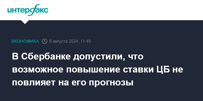 В Сбербанке допустили, что возможное повышение ставки ЦБ не повлияет на его прогнозы