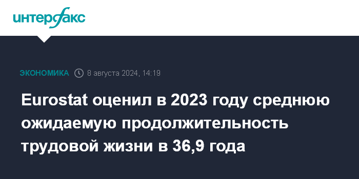 Eurostat оценил в 2023 году среднюю ожидаемую продолжительность трудовой жизни в 36,9 года