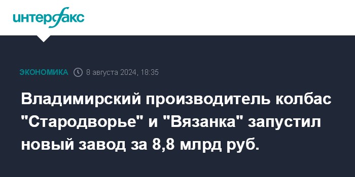 Владимирский производитель колбас "Стародворье" и "Вязанка" запустил новый завод за 8,8 млрд руб.