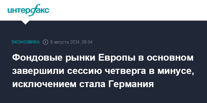 Москва. 9 августа. INTERFAX.RU - Фондовые рынки крупнейших стран Западной Европы в основном завершили торги в четверг в минусе, исключением стала Германия.