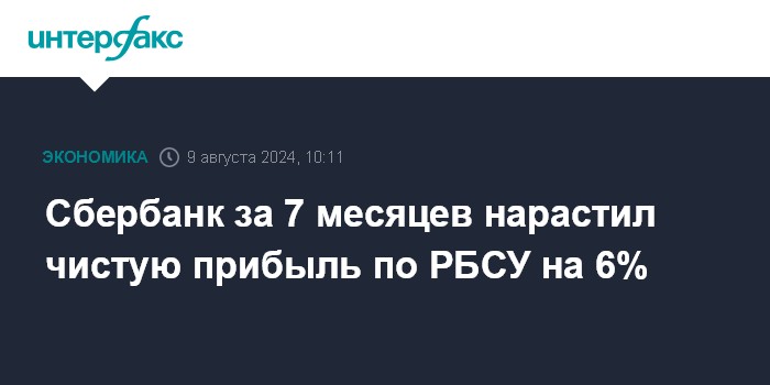 Сбербанк за 7 месяцев нарастил чистую прибыль по РБСУ на 6%