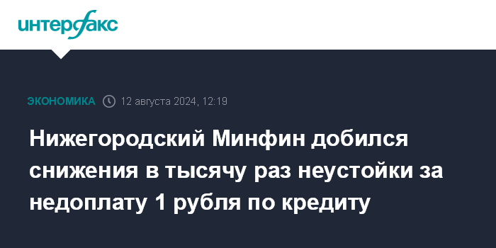 Нижегородский Минфин добился снижения в тысячу раз неустойки за недоплату 1 рубля по кредиту
