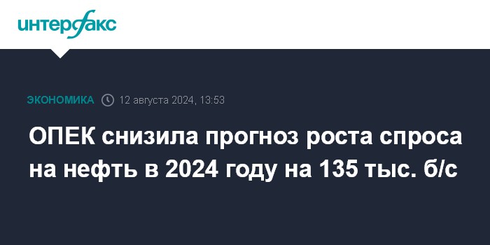 ОПЕК снизила прогноз роста спроса на нефть в 2024 году на 135 тыс. б/с