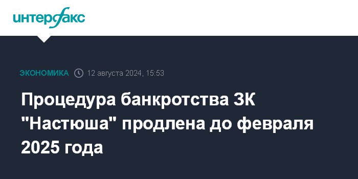 Процедура банкротства ЗК "Настюша" продлена до февраля 2025 года