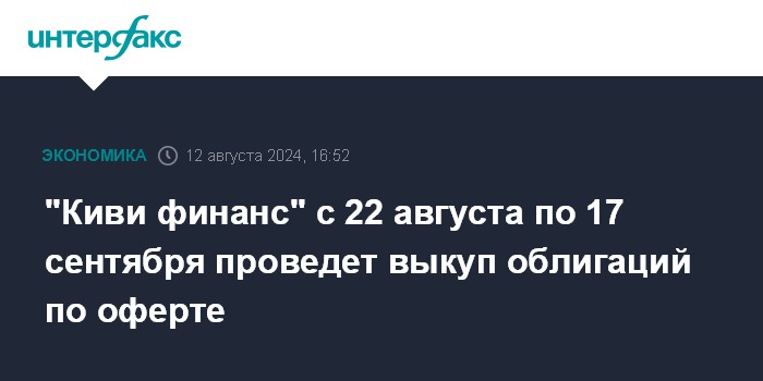 "Киви финанс" с 22 августа по 17 сентября проведет выкуп облигаций по оферте