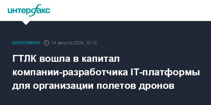 ГТЛК вошла в капитал компании-разработчика IT-платформы для организации полетов дронов