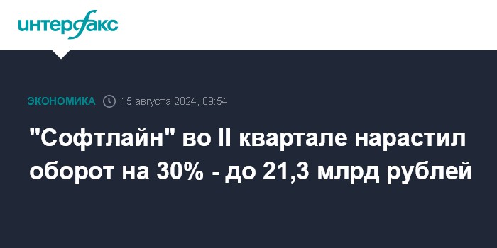 По итогам I полугодия оборот "Софтлайна" увеличился на 40% по сравнению с тем же периодом 2023 года - до 42,8 млрд рублей. Около 30% показателя пришлось на оборот от продажи собственных решений компании.