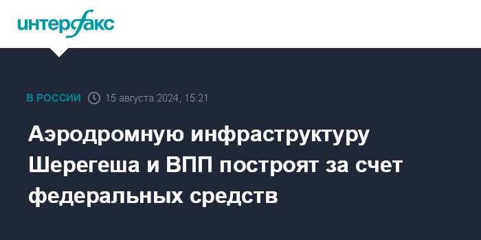 Москва. 15 августа. INTERFAX.RU - Аэродромную инфраструктуру и взлетно-посадочную полосу для проектируемого аэропорта в Шерегеше будут строить за счет федерального финансирования, сообщил врио губернатора Кемеровской области Илья Середюк.