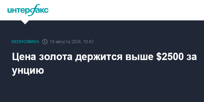 Москва. 19 августа. INTERFAX.RU - Цена золота, впервые превысившая $2500 за унцию в минувшую пятницу, держится выше этой отметки на торгах в понедельник.