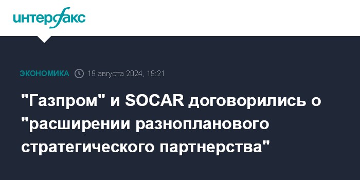 "Газпром" и SOCAR договорились о "расширении разнопланового стратегического партнерства"