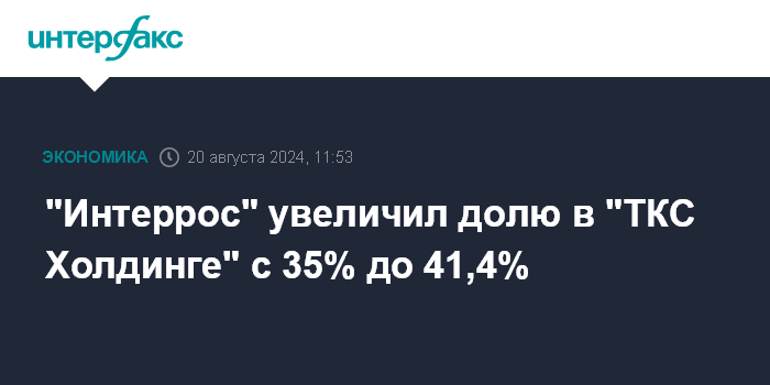 "Интеррос" увеличил долю в "ТКС Холдинге" с 35% до 41,4%