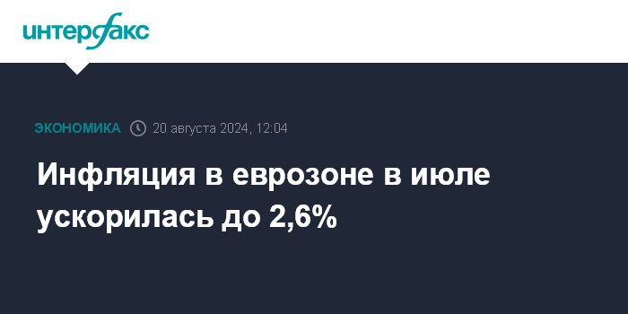 Инфляция в еврозоне в июле ускорилась до 2,6%